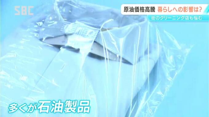 ミソノクリーニング 山岸将さん:「これこれ、これ上がってます。スーツとかコートとか、包装するやつです。あった、あった、これなんて9円なんですよ当時。今年13円になってますもんね。本当石油関連ですよね。ハンガーやら包装ビニールとかが」