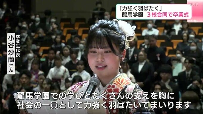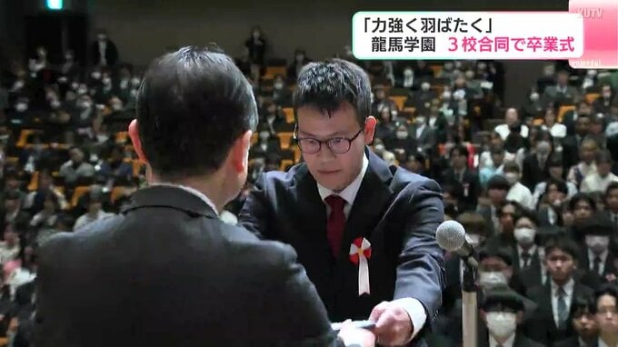 龍馬学園、3校合同の卒業式が高知市で行われ、卒業生たちが新しい世界に向けて旅立ちました。