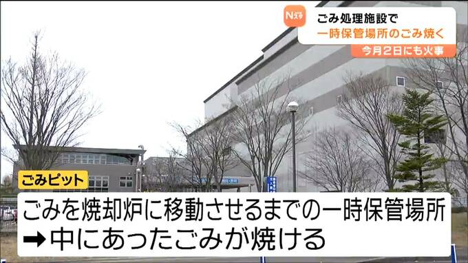 施設によりますと、ごみピットはごみを焼却炉に移動させるまでの一時保管場所で、中にあったごみが焼けたということです。松森工場では3月2日にもごみピットで火事があったばかりで、警察と消防が火が出た原因を調べています。