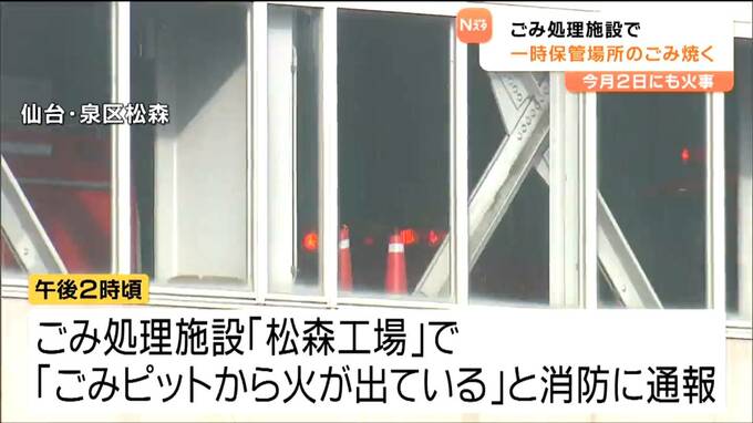 3月6日午後、仙台市のごみ処理施設で、ごみの一時保管場所にあったごみを焼く火事がありました。この施設では3月2日にも同様の火事があり、警察と消防が火が出た原因を調べています。