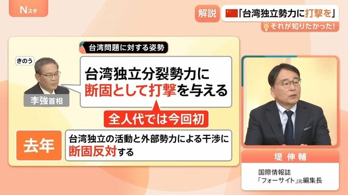 トランプ氏の訪中や統一地方選挙の前触れとして、台湾に揺さぶりをかける意図が、全人代での「打撃」という発言に集約されていると思います。