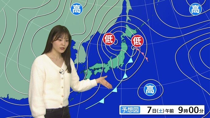 7日(土)は低気圧が発達しながら北日本に近づく予想で、雪や風が強まり荒れた天気となりそうです。吹雪やホワイトアウトによる見通しの悪化、暴風などにお気をつけください。北陸や山陰は雨が降りやすく、夜は平…