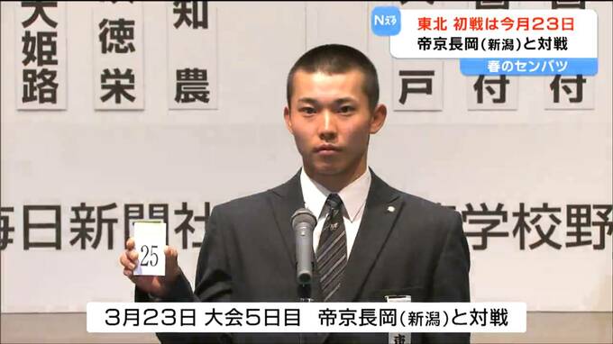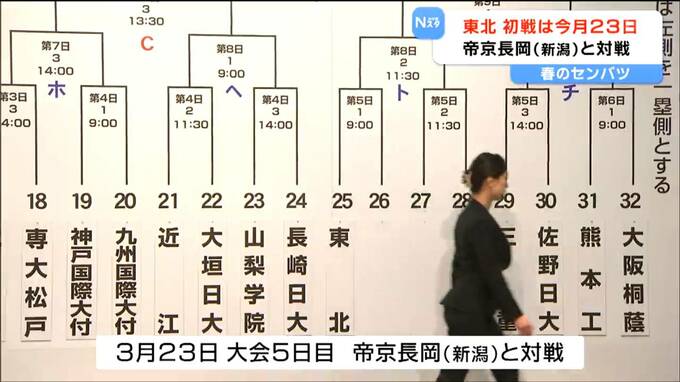3月6日に組み合わせ抽選会が行われ、宮城から出場する東北高校は新潟の帝京長岡との初戦が決まりました。