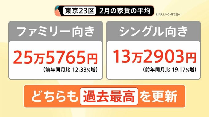 家賃は上がり続けていて、ファミリー向き、シングル向きともに過去最高を更新しています。