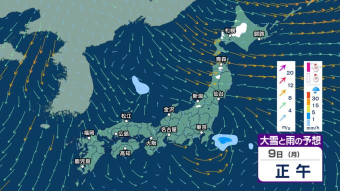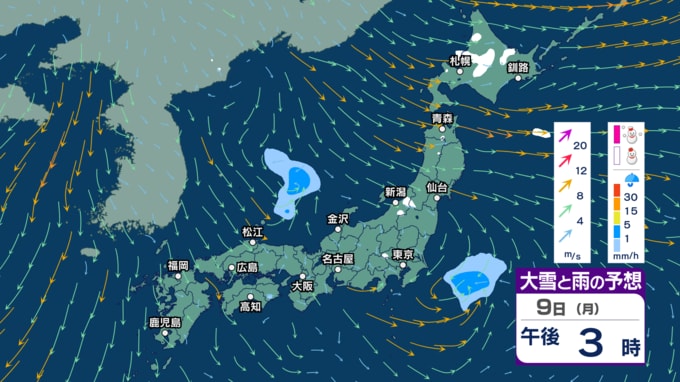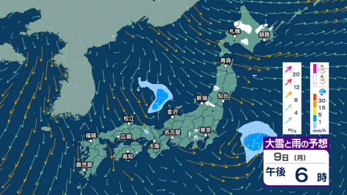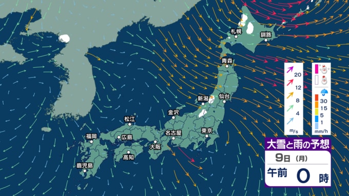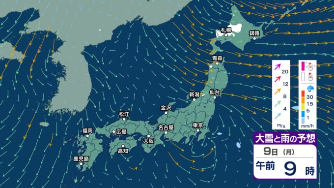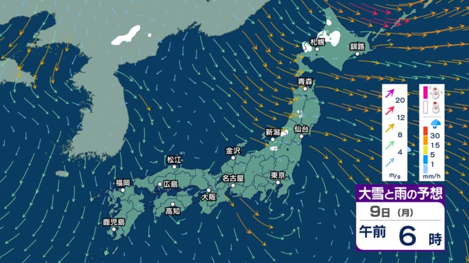 土日は“冬の嵐”に? 寒気流入で北日本~東日本日本海側で大雪か 風も強まり東北では暴風の恐れ 海は大しけに? 【3時間ごとの雨雪と風のシミュレーション・6日午後9時更新】