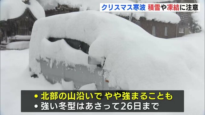 大雪のピークは過ぎましたが、この後も北部の山沿いを中心に、雪がやや強まる時間帯もありそうです。強い冬型の気圧配置は26日、月曜日ごろまで続く見込みです。