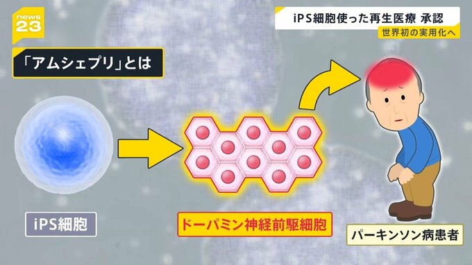 「アムシェプリ」は「ドーパミンを生み出すもととなる細胞」で、パーキンソン病患者の脳に移植することで症状の改善を目指すというものです。