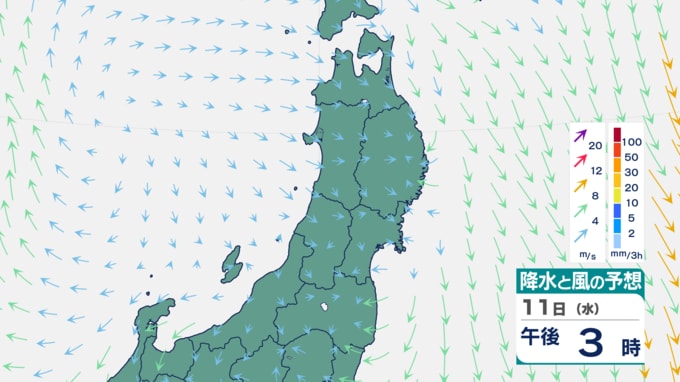 被災地に頻繁に足を運ばれている方はご承知かと思いますが、沿岸部は風を遮る高い建物が少なく、穏やかな風であっても思いのほか寒く感じられることがあります。当日は移動性の高気圧に覆われ、沿岸被災地は東寄りの海からの風が吹く見込みです。