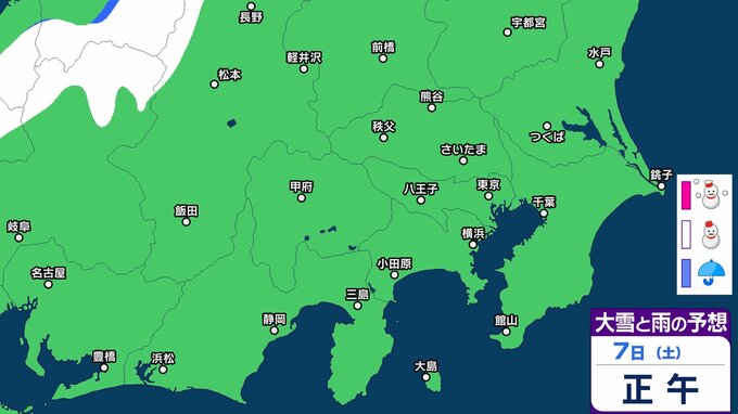 【東京首都圏で今夜雪か?】東京・神奈川・千葉・埼玉・茨城・群馬・栃木・山梨・長野 関東甲信7日(土)~12日(木)3時間ごと雪雨シミュレーション【気象庁7日現在】 RSK山陽放送 2026年3月7日(土) 09:36 国内 7日(土)の雪雨シミュレーション 【画像】7日(土)~12日(木)3時間ごとの雪雨シミュレーション 【画像】7日(土)~12日(木)3時間ごとの雪雨シミュレーション