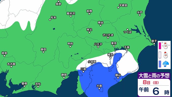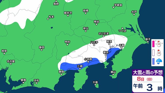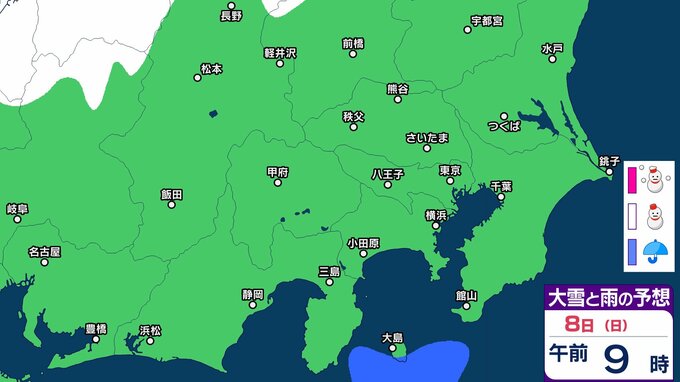【東京首都圏で今夜雪か?】東京・神奈川・千葉・埼玉・茨城・群馬・栃木・山梨・長野 関東甲信7日(土)~12日(木)3時間ごと雪雨シミュレーション【気象庁7日現在】 RSK山陽放送 2026年3月7日(土) 09:36 国内 8日(日) 【画像】7日(土)~12日(木)3時間ごとの雪雨シミュレーション 【画像】7日(土)~12日(木)3時間ごとの雪雨シミュレーション