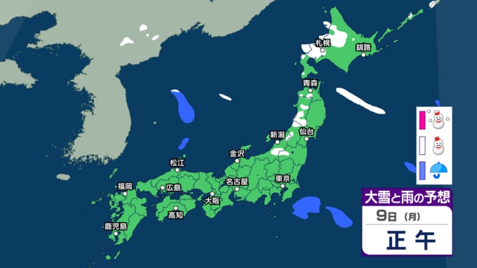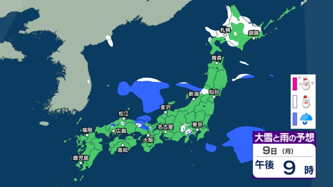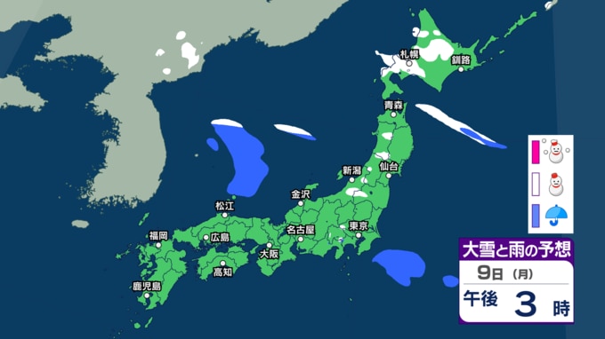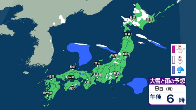 北日本~東日本日本海側を中心に大雪か 暴風や高波にも警戒を 関東周辺でもあす8日深夜~朝に雨や雪の可能性【3時間ごとの雨と雪のシミュレーション・7日正午更新】