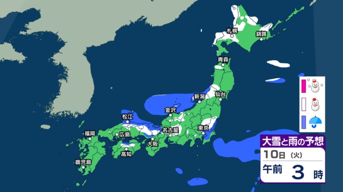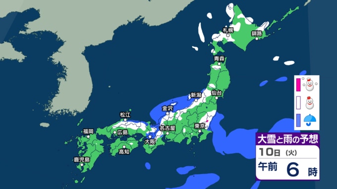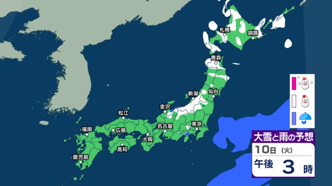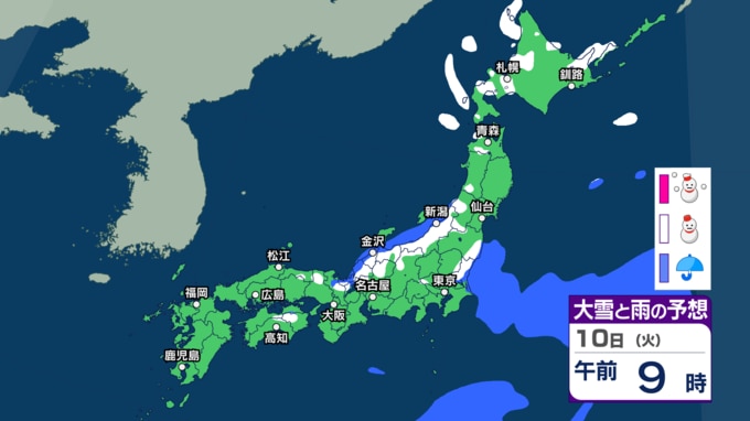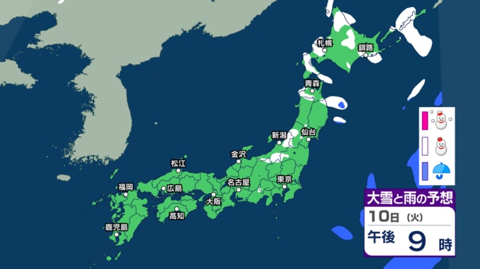 北日本~東日本日本海側を中心に大雪か 暴風や高波にも警戒を 関東周辺でもあす8日深夜~朝に雨や雪の可能性【3時間ごとの雨と雪のシミュレーション・7日正午更新】