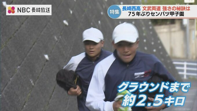 部員らは授業が終わると急いで練習着に着替えます。そして校舎からおよそ2.5キロ離れた高台の練習場まで毎日走り、足腰を鍛えています。