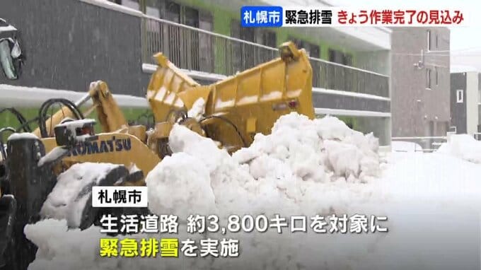 札幌市は、市内全域の生活道路で進めている「緊急排雪」について、7日で作業を完了する見込みです。