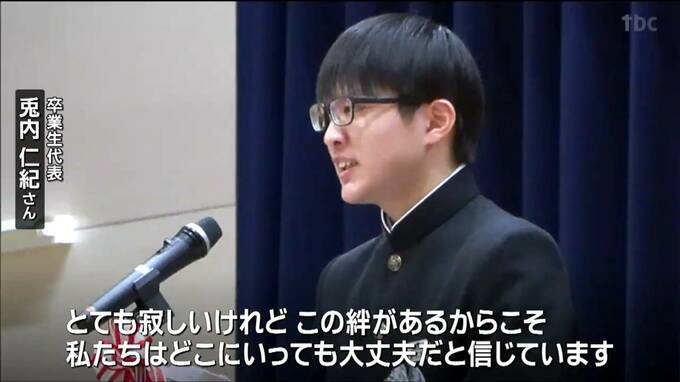 卒業生代表・兎内仁紀さん「とても寂しいけれど、この絆があるからこそ、私たちはどこにいっても大丈夫だと信じています」
