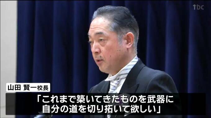 式では、山田賢一校長から、「これまで築いてきたものを武器に自分の道を切り拓いて欲しい」とはなむけの言葉が贈られました。