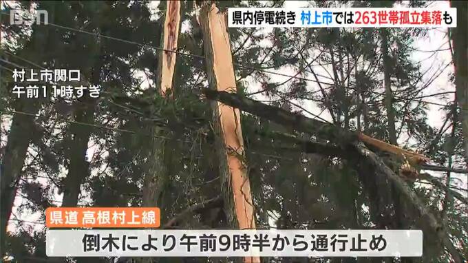 23日からの大雪で新潟県内では停電が続き、倒木の影響で村上市では孤立している集落もあります。なお県は24日、佐渡市と村上市に災害救助法を適用したと発表しました。新潟県では24日、下越を中心に大雪となり8月…