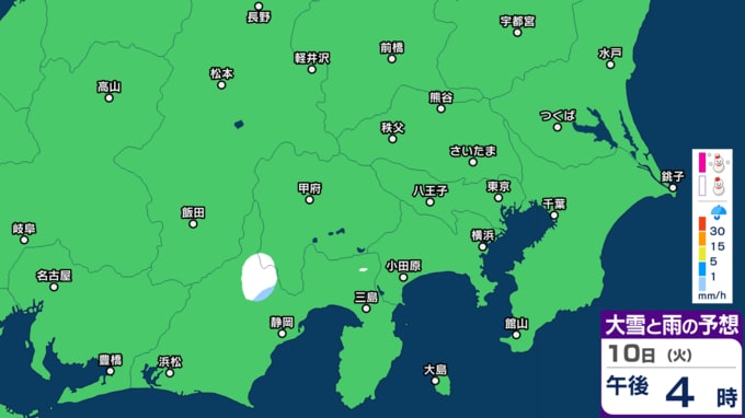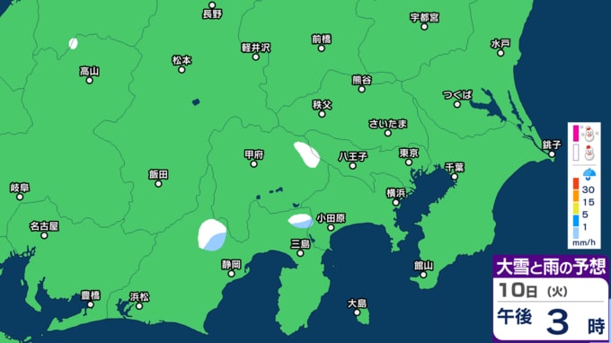 【3月また雪?】東京・神奈川・千葉・埼玉・茨城・栃木・群馬・山梨・長野 関東甲信エリア 7日(土)~10日(火)1時間ごとの雪雨シミュレーション 【気象庁/7日発表】 RSK山陽放送 2026年3月7日(土) 20:00 国内 天気 10日(火)午後 3月7日から10日の雪雨シミュレーション画像 3月7日から10日の雪雨シミュレーション画像 ※シミュレーション(GSM)は比較的大まかに雨・雪雲を予想する傾向があるため、局地的には雨・雪が降らないこともあります。予想にはブレ幅がありますので、最新の気象情報を確認してください。
