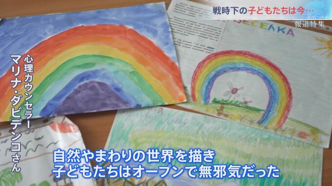 男の子の1人は、自宅の上をミサイルが飛ぶ絵を描いていた。戦争が始まってから、子どもの絵は大きく変化したと学校の心理カウンセラーは話す。