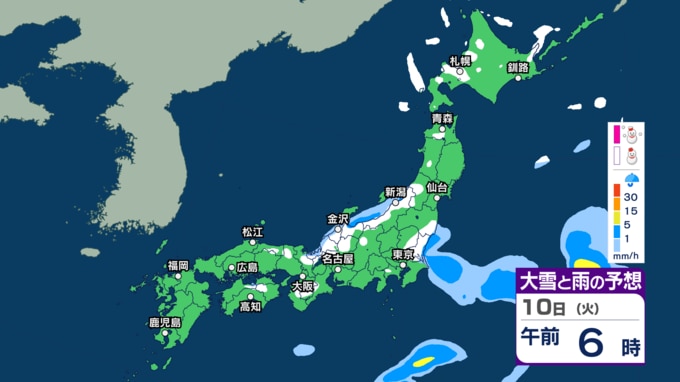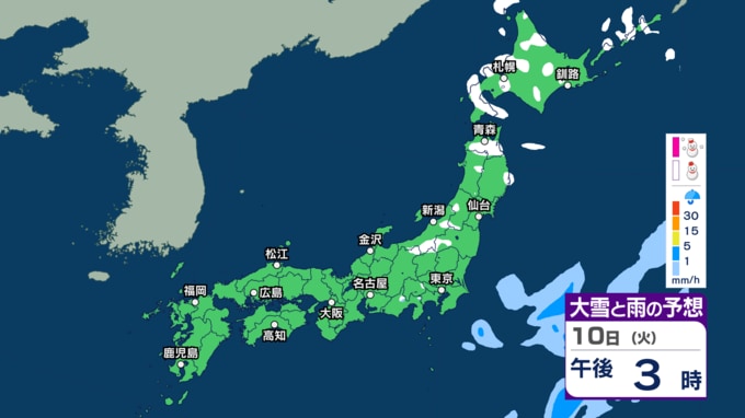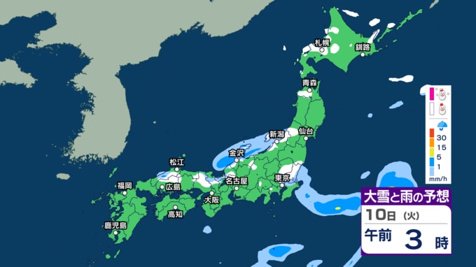 関東周辺でもあす8日朝にかけて雪の所も? 日本海側を中心に8日午後にかけて雪 北海道や東北、北陸では大雪に注意【3時間ごとの雨と雪のシミュレーション・7日午後10時更新】 新潟放送 2026年3月7日(土) 22:00