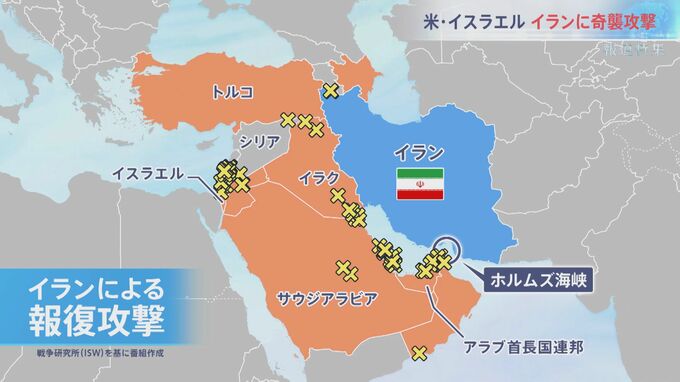 報復攻撃は、イスラエルだけでなく、アメリカ軍の拠点などがある中東各国にも向けられた。