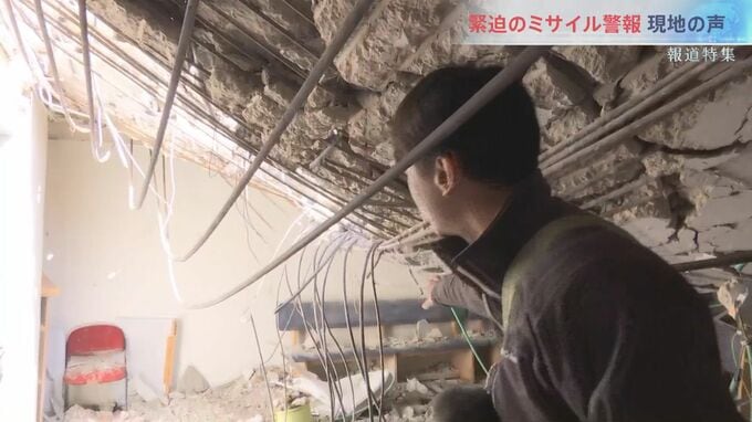 「完全に天井が落ちてきています。鉄筋が完全に抜けてしまって、ぐにゃりと曲がって、まさに、ミサイルが突き抜けてきている。この場所に立っていた2人は亡くなったけれども、こちらの壁側に立っていた人たちは助かったということです」