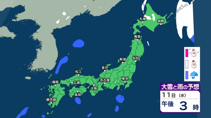 【今後の雨と雪は?】きょう8日は冬型の気圧配置が続き日本海側で雪の所も 10日ごろも広い範囲で雨や雪 北日本や北陸で大雪の可能性も【3時間ごとの雨雪シミュレーション・8日正午更新】