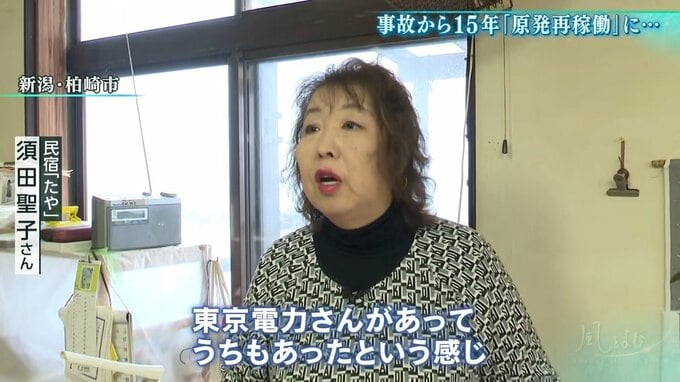 柏崎刈羽原発から約3km。ここで民宿を切り盛りする須田聖子さんは、再稼働を待ち望んでいました。40年以上稼働してきた原発は、生活の糧として大切な存在です。
