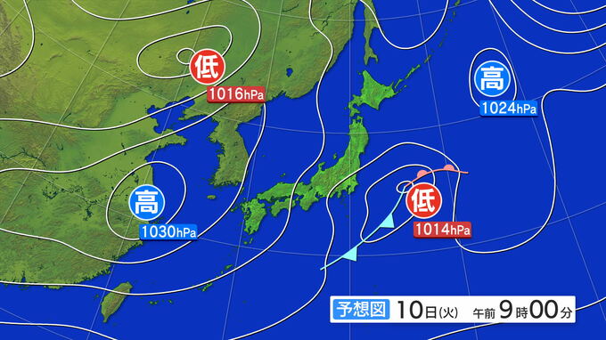 あす(9日)は、低気圧が伊豆諸島付近で発生して東北東へ進み、低気圧からのびる気圧の谷の影響を受ける見込みです。このため、曇り昼前から昼過ぎ晴れで、夜は雨や雪が降る所があるということです。