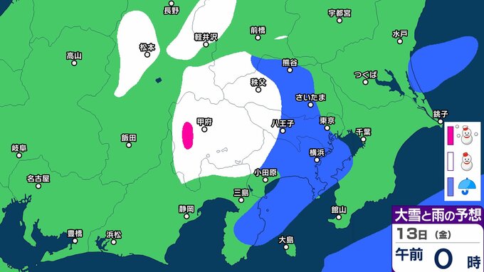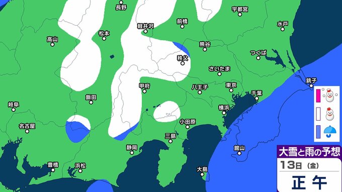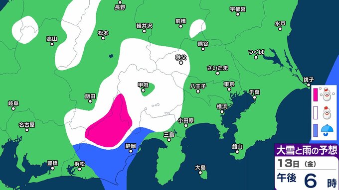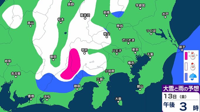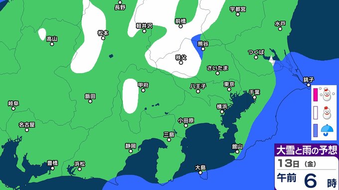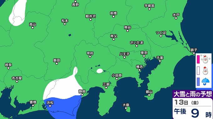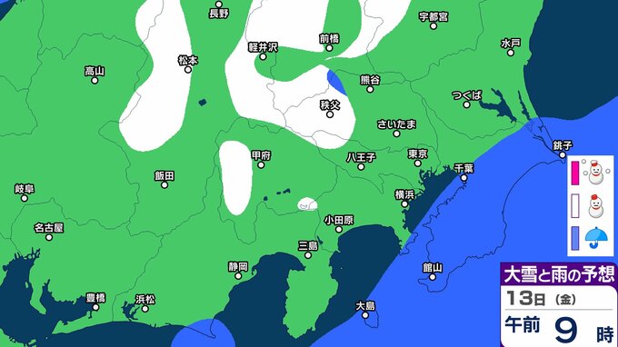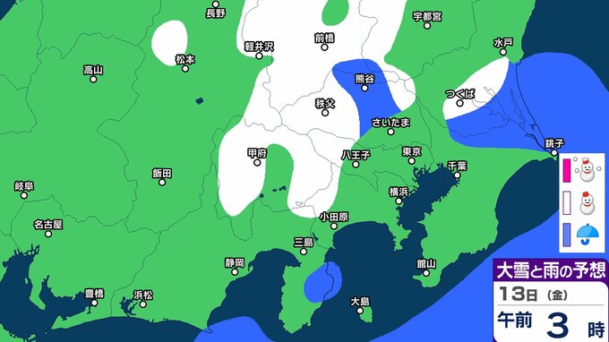 【東京首都圏 こんや雪?】東京・神奈川・千葉・埼玉・茨城・群馬・栃木・山梨・長野 関東甲信9日(月)~14日(土)3時間ごと雪雨シミュレーション 12日~13日にかけて広範囲で雪と雨の予想【気象庁9日現在】 RSK山陽放送 2026年3月8日(日) 18:00 国内 13日(金) 9日(月)~14日(土)3時間ごとの雪雨シミュレーション 9日(月)~14日(土)3時間ごとの雪雨シミュレーション