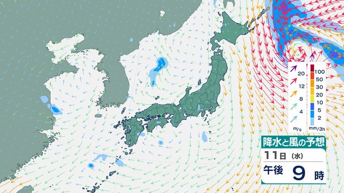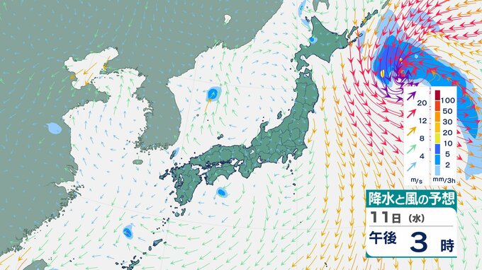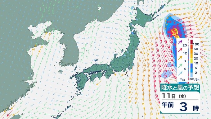 「真冬の嵐」再来か 北日本で3時間5cm降雪 9日から東・西日本も「落雷・ひょう」おそれ【雨と風のシミュレーション】 チューリップテレビ 2026年3月8日(日) 18:37 国内 11日(水)の雨と風のシミュレーション