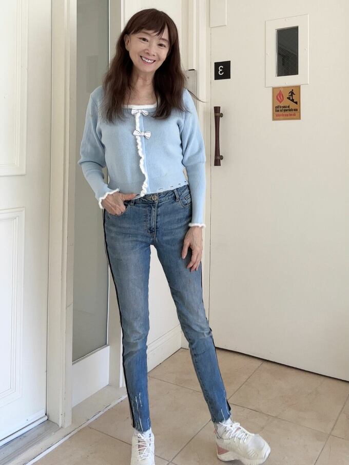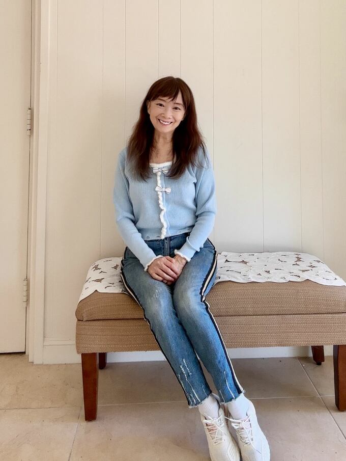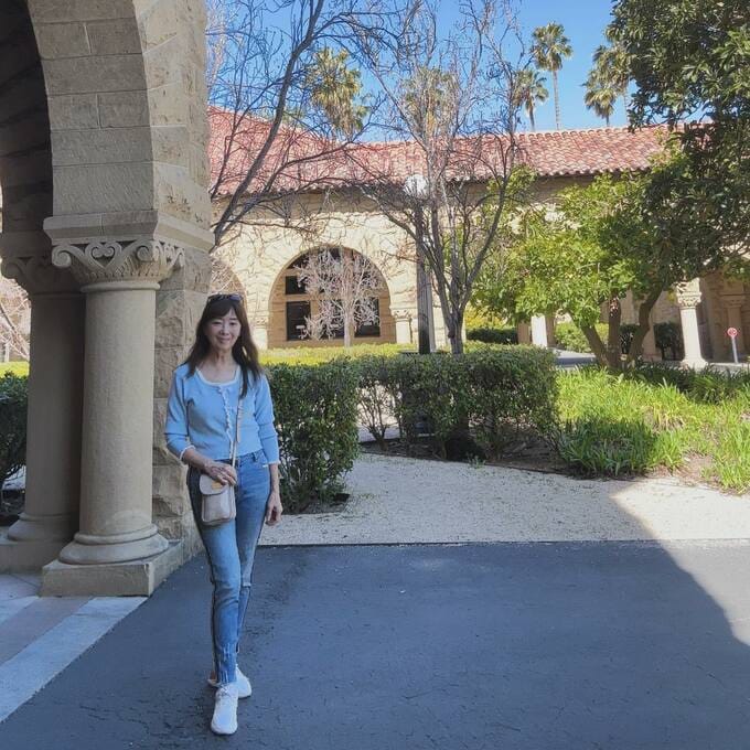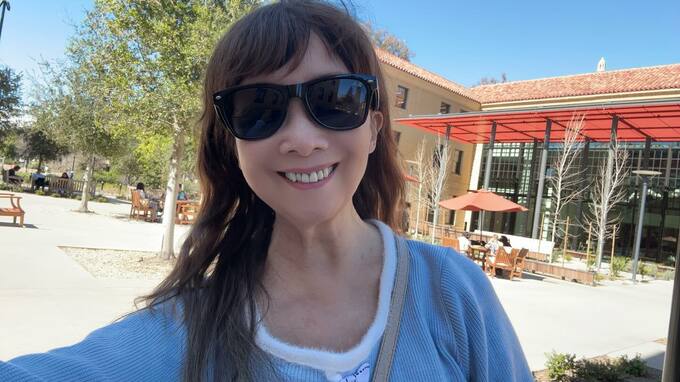 アグネスさんは「今日久しぶりに母校スタンフォード大学を訪ねます。楽しみです。」とカジュアルで若々しいスタイルを披露。