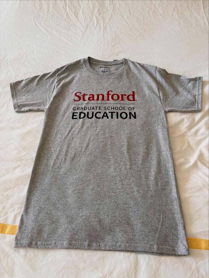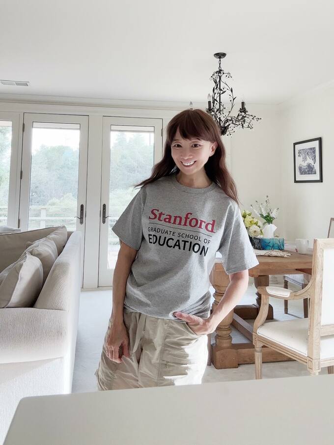 「教育学部で博士号を取った」という、アグネス・チャンさんは「スタンフォードのブックストアで色んな学部の服が売ってあった。」「しかし教育学部はTシャツ一枚だけ。。。 しかも男のサイズ。 それでも負けずに買いました。」と、投稿。