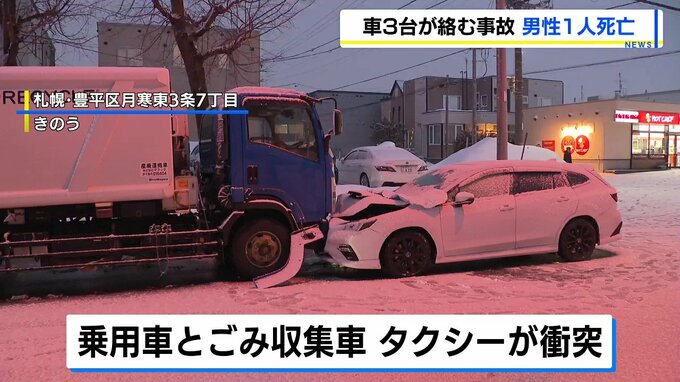 札幌市豊平区で8日、乗用車やごみ収集車など3台がからむ事故があり、乗用車を運転していた50歳の男性が死亡しました。