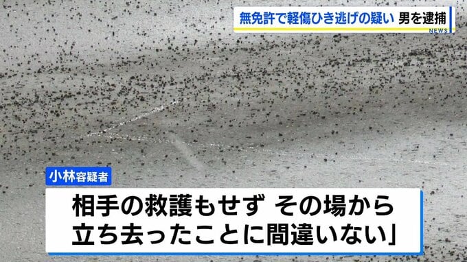 小林容疑者は、「無免許で車を運転して、赤信号を見落として事故を起こしたのに、相手の救護もせず、その場から立ち去ったことに間違いない」と容疑を認めているということです。