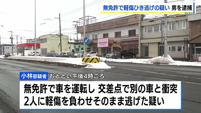 7日、北海道旭川市で無免許で車を運転し別の車に衝突して2人に軽いけがをさせて逃げた男が8日、逮捕されました。