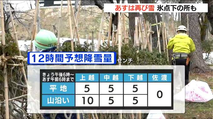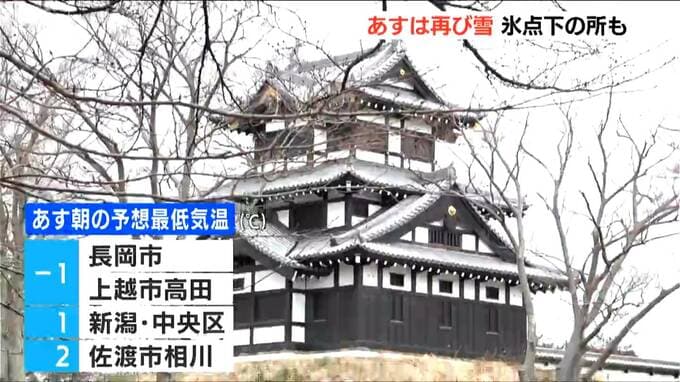 朝の最低気温も長岡市や上越市で氷点下になることが予想されていて、再び冬を感じる一日となりそうです。