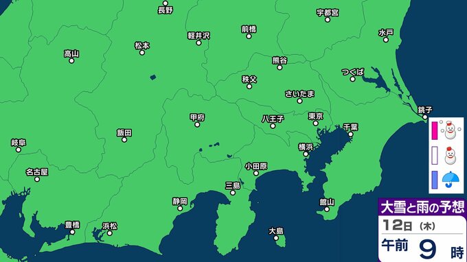 【東京首都圏 こんや雪?】東京・神奈川・千葉・埼玉・茨城・群馬・栃木・山梨・長野 関東甲信9日(月)~14日(土)3時間ごと雪雨シミュレーション【気象庁9日午後5時シミュレーション更新】 RSK山陽放送 2026年3月9日(月) 17:00 国内 12日(木) 9日(月)~14日(土)3時間ごとの雪雨シミュレーション 9日(月)~14日(土)3時間ごとの雪雨シミュレーション