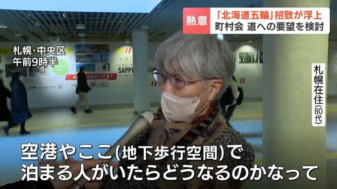 「(五輪を)やれば豊かになると思うけど、天気(大雪)でどうなるのかなって。空港やここ(地下歩行空間)で泊まる人がいたらどうなるのかなって」