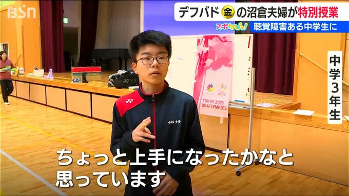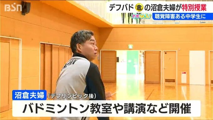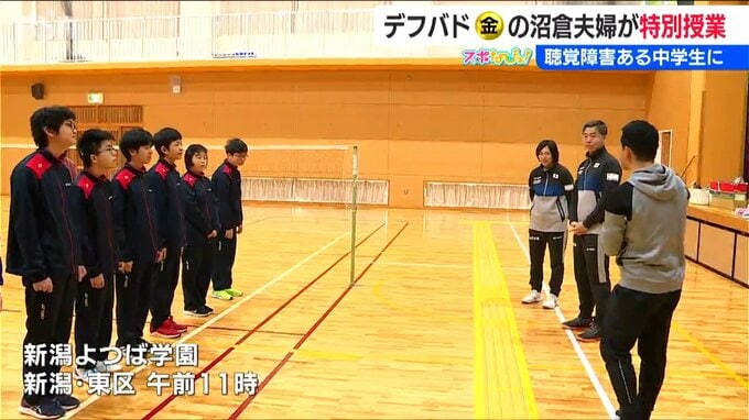 去年開催された聴覚障害者スポーツの世界大会、東京デフリンピックのバドミントンで金メダルを獲得した沼倉夫婦が新潟市で特別授業を開催。生徒たちは目を輝かせてバドミントンを楽しんでいました。
