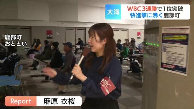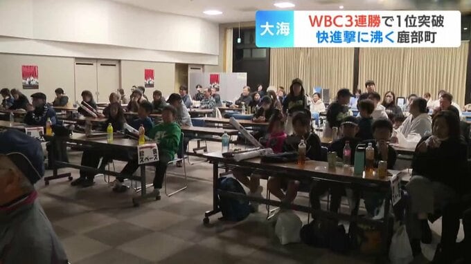 「道内で唯一パブリックビューイングが行われている鹿部町です。会場の中を覗くと60人以上の人たちがエールを送っています」