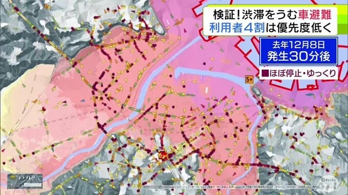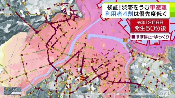 地震発生から50分 高台へ続く幹線道路の多くで「渋滞」が…