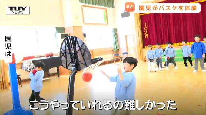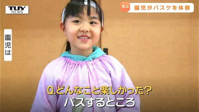 園児「Q難しいことあった?)あった。こうやっていれるの難しかった。バスケもっとうまくなりたいです」