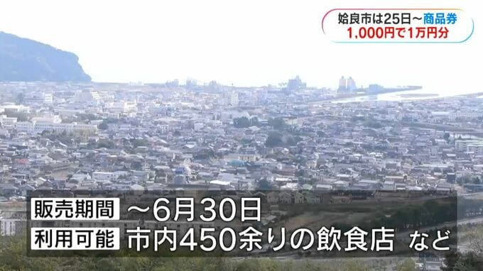 このうち姶良市は、1000円で1万円分となる商品券を発行することにしていて、今月25日に販売と利用を開始すると9日に明らかにしました。
