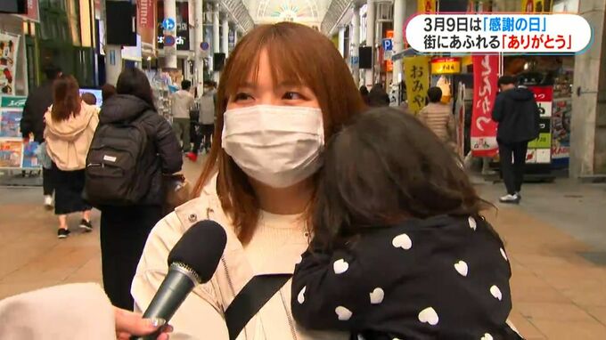 きょう3月9日は、3(サン)9(キュー)の語呂合わせで「感謝の日」です。天文館で日頃の感謝の思いを聞きました。(レポーター)「きょうは感謝の日。私は母に、いつもありがとうと伝えたいです。街の皆さんは誰に…