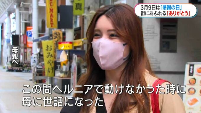 きょう3月9日は、3(サン)9(キュー)の語呂合わせで「感謝の日」です。天文館で日頃の感謝の思いを聞きました。