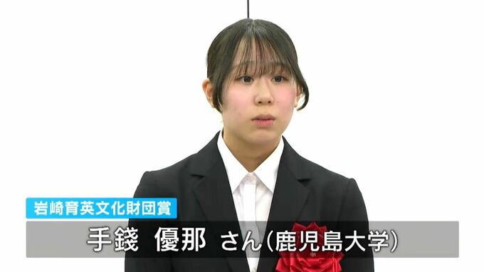 スポーツや文化活動などで活躍した高校生や大学生を表彰する「岩崎育英文化財団賞」の授賞式が、鹿児島市でありました