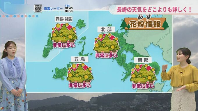 まだスギ花粉が大量に飛んでいます。島原ではヒノキ花粉もごくわずかに観測されており、3月下旬にヒノキの花粉の飛散がピークとなるでしょう。