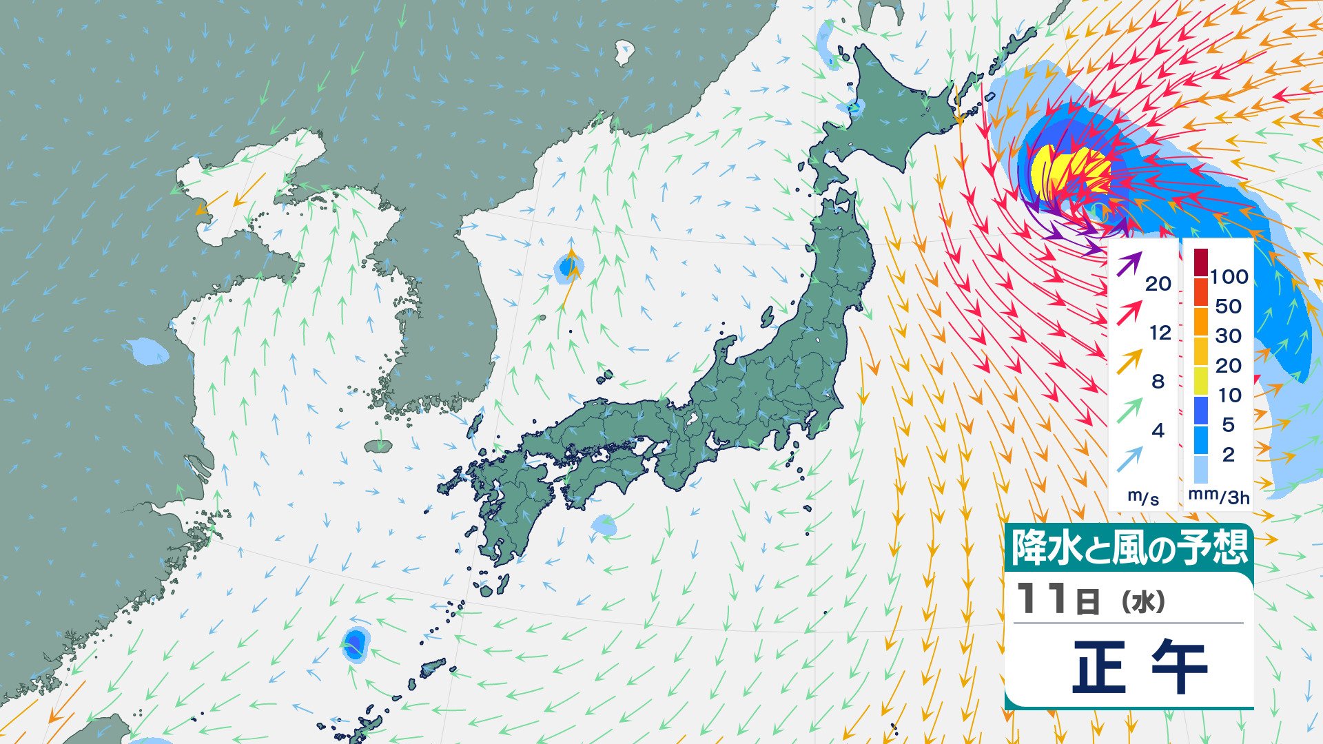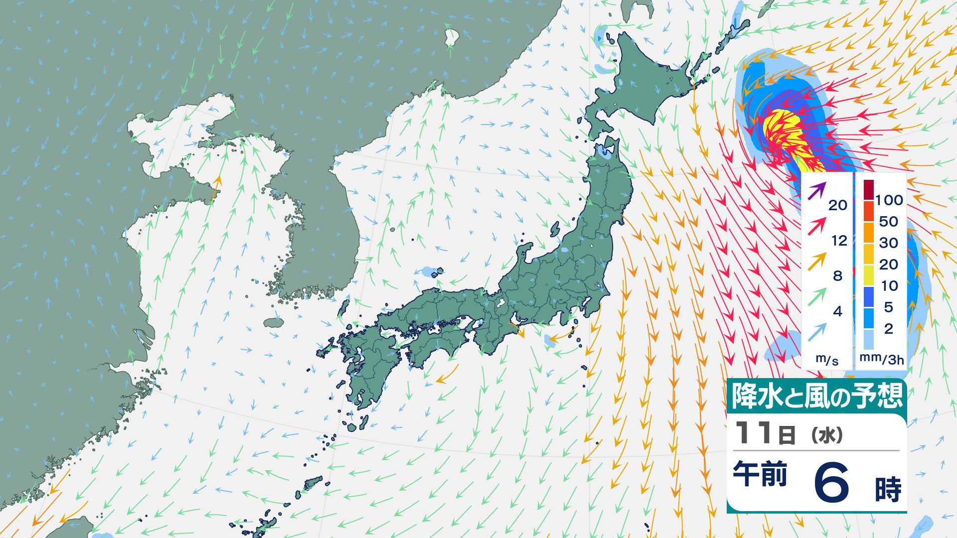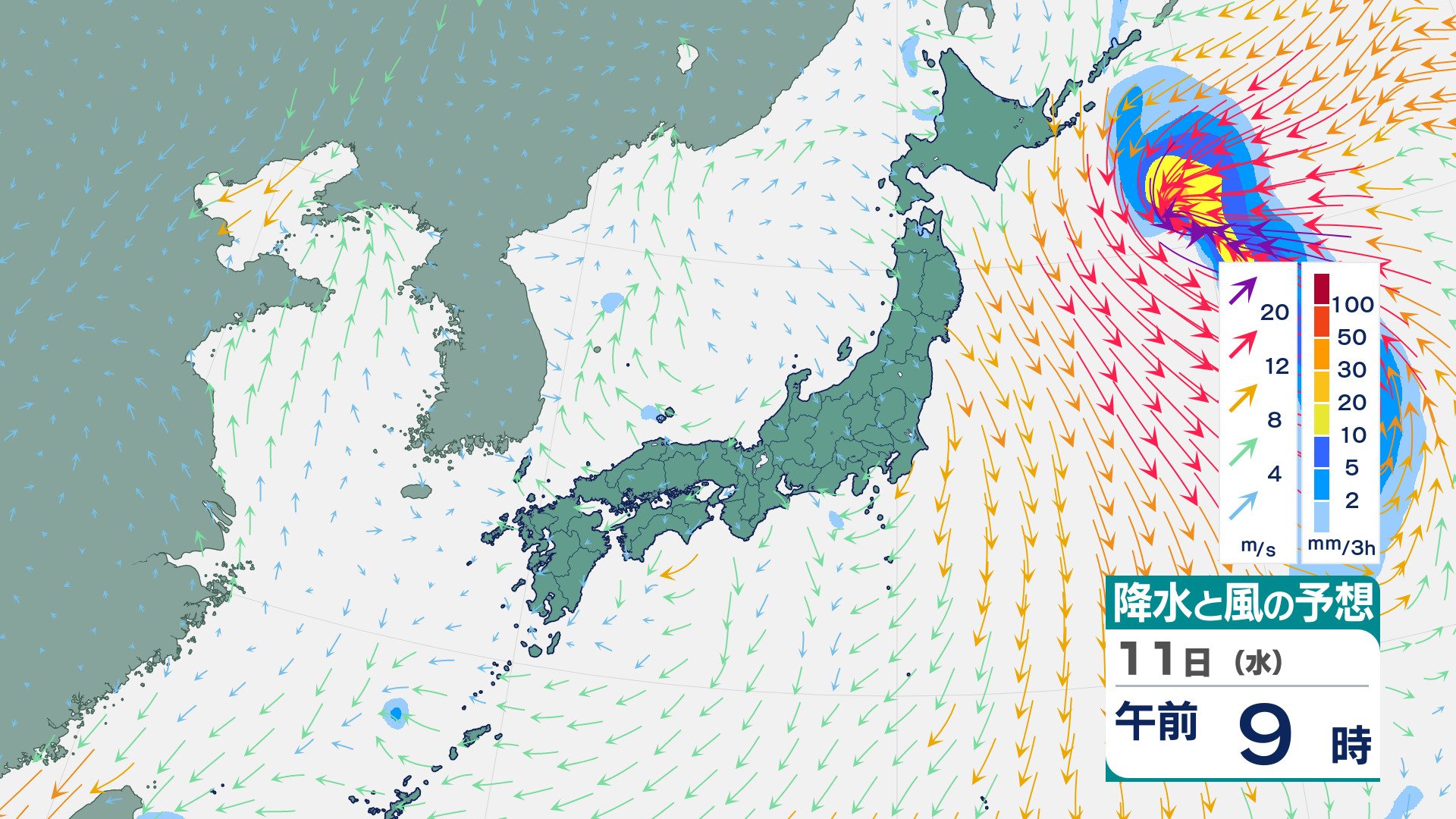 四国・九州北部・九州南部は“真っ赤”…“10年に一度レベル”の高温の可能性 19日ごろから 気象庁が「早期天候情報」発表 チューリップテレビ 2026年3月9日(月) 20:28 11日(水)の雨と風のシミュレーション