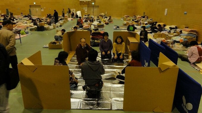 街の未来図を描く一方で、避難所の現実的な課題も山積していた。体育館には物資が増え、居住スペースに不公平が生じていた。早くからいる避難者が広い場所を取り、後から来た者が狭い隙間に追いやられる。2階の通路にいる避難者と、1階にいる避難者の間には、視線を巡る疑心暗鬼も起きていた。高橋さんが避難者からクレームを受けることもあった。